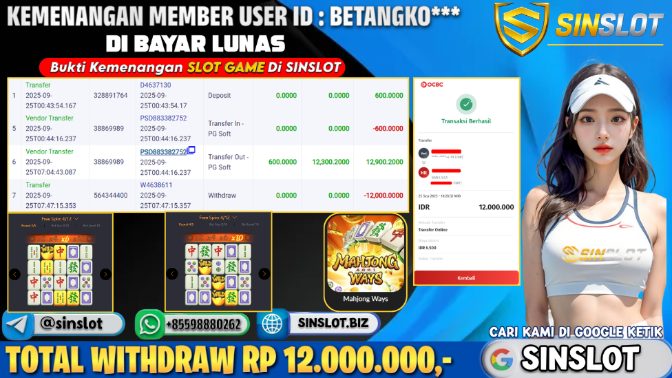 SINSLOT adalah Situs Slot Online & Judi Bola Online di Indonesia. Dengan menyediakan berbagai macam permainan yang seru dan menarik di SINSLOT, maka anda tidak perlu ragu lagi untuk bergabung dan bermain bersama kami situs judi online terpercaya yang akan membayar berapapun kemenangan anda. Hanya dengan 1 User ID anda sudah dapat memainkan semua permainan mulai dari Slot Online, Sportbook, Sabung Ayam, Tembak Ikan, togel, Live casino sampai Bola Tangkas yang pastinya seru dan menyenangkan.