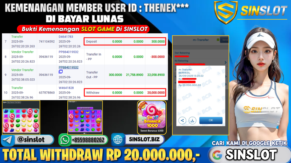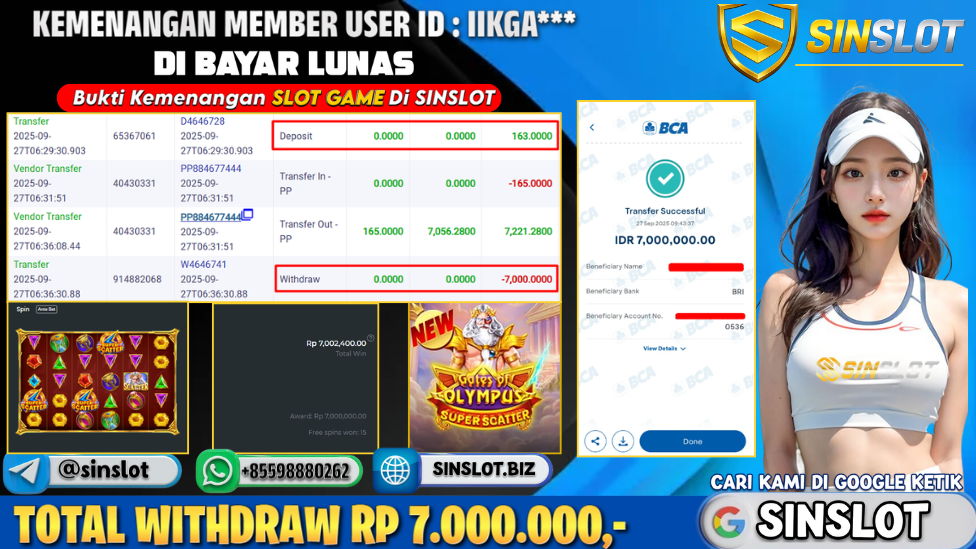 Selamat kepada User id : Fr****ly Telah berhasil mendapatkan kemenangan besar pada permainan GATES OF OLYMPUS 1000 kemenangan Sebesar Rp23.101,000.-Sudah Berhasil withdraw dengan kurung waktu hanya 5 – 10 menit Dari pihak SINSLOT sudah melakukan transfer kepada pemilik Userid dan dana sudah dapat di cairkan oleh pemenang. Bukti pembayaran yang kami berikan merupakan bukti pembayaran yang SAH / VALID yang langung di dapatkan melalui tanda transfer transaksi dari Bank yang di tuju.